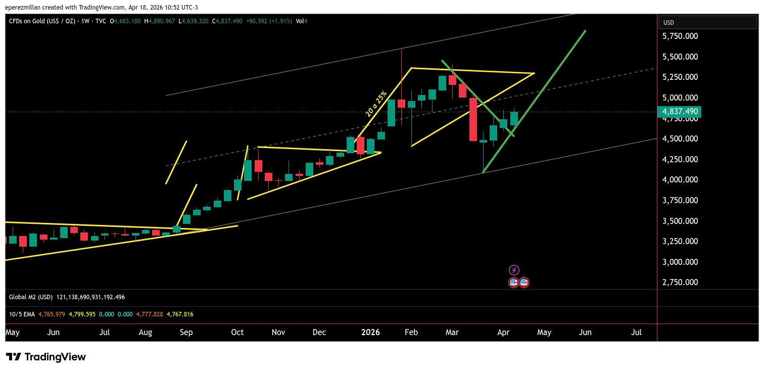 En el gráfico tenemos el oro, sosteniendo su actitud alcista: