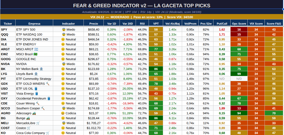 Wall Street Mediante codificación de parámetros con IA presentamos un indice de Miedo y Codicia que al cierre hoy se...